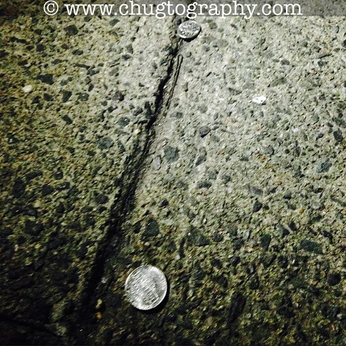 Lost coins have to survive the harshest conditions hoping to be found so they can be appreciated again. Snow, rain, ice, snowplows, cars, trucks, tar, oil, gum, gravel…you get the picture. It’s not surprising that many are found and rescued in pretty rough settings. These pictures show that reality.